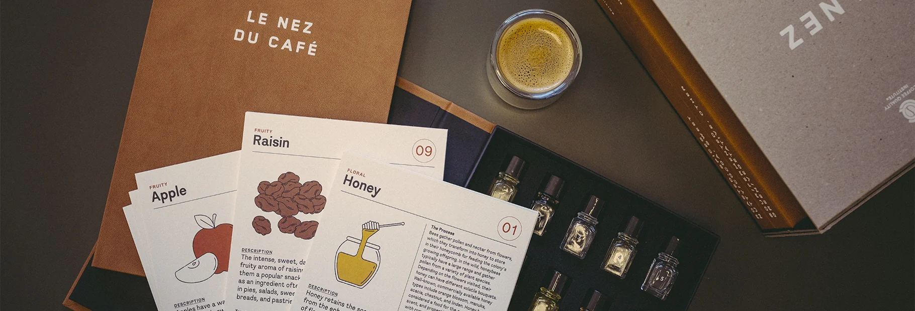 - A booklet serves as an informative and engaging guide that makes the link between aromas and coffee
